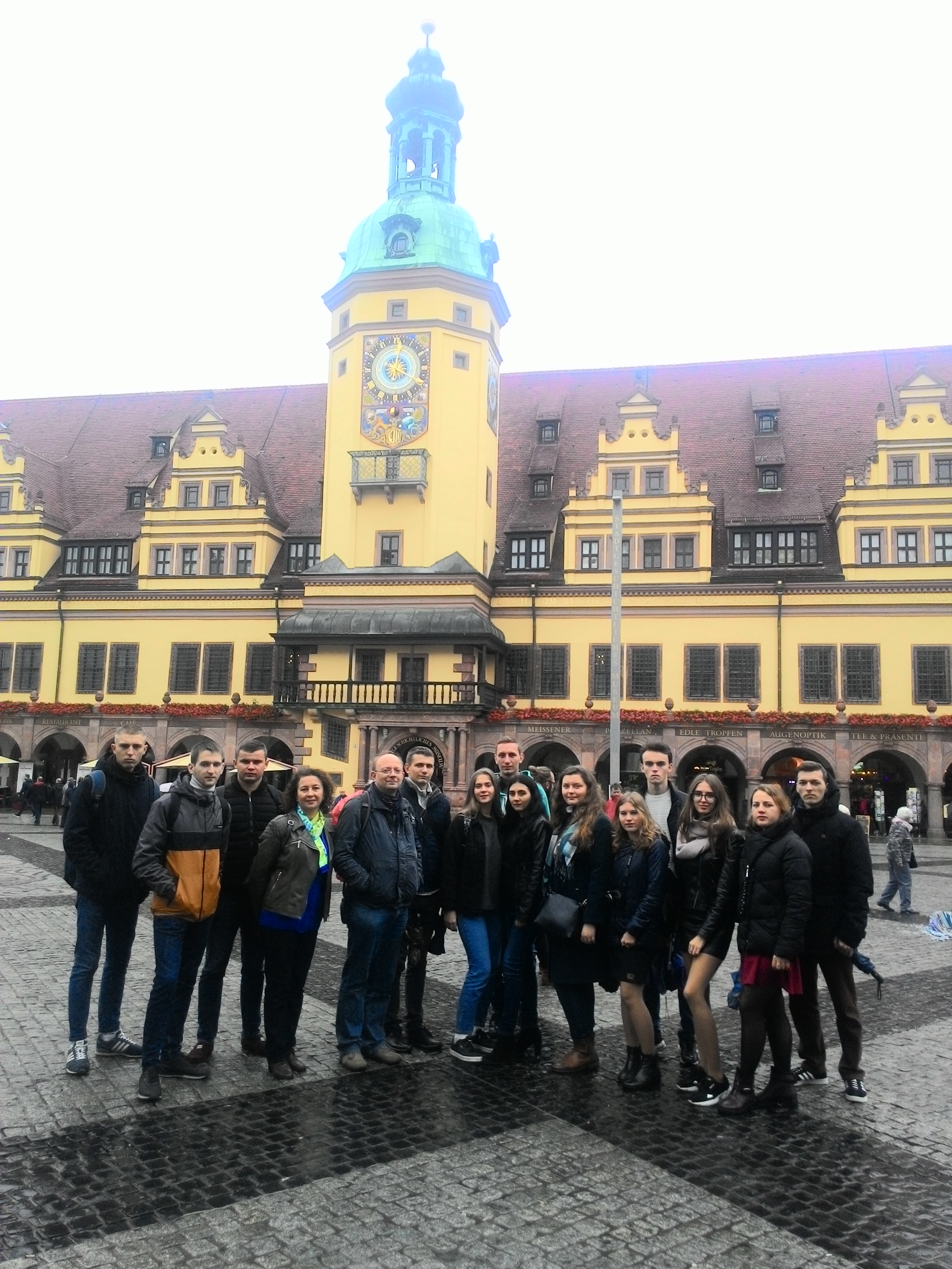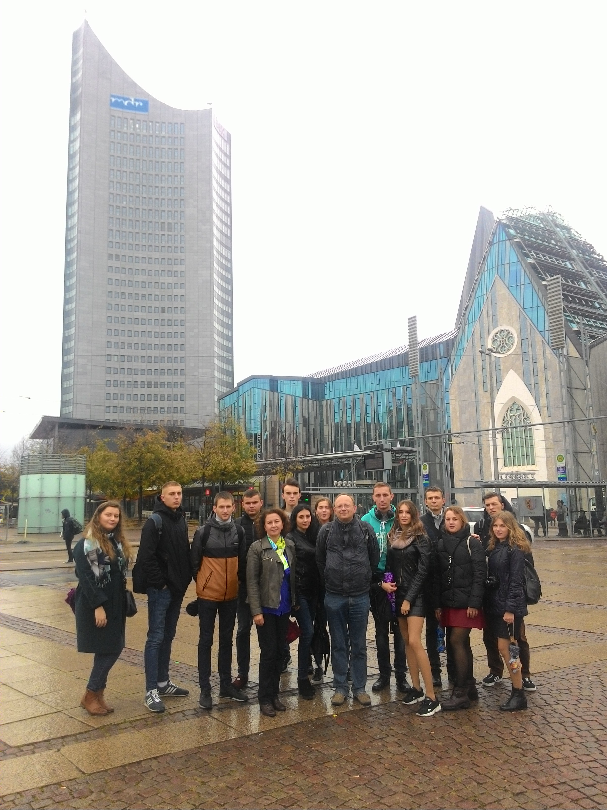 Від вокзалу наша група відправилася на площу Августа. Першою тут кидається в очі будівля університету, яка більше схожа на церкву. Церква в будівлі університету і справді функціонує, проте від її первозданного вигляду не залишилось майже нічого. Лейпциг є великим центром науки. Лейпцігський університет є одним з найстаріших у Німеччині. Не даремно Лейпциг називають містом німецьких класиків, в цьому місті свого часу жили, вчилися і створювали свої безсмертні шедеври Вагнер, Гете, Лейбніц, Мюнцер, Ніцше, Радищев і інші видатні діячі науки і мистецтва.
