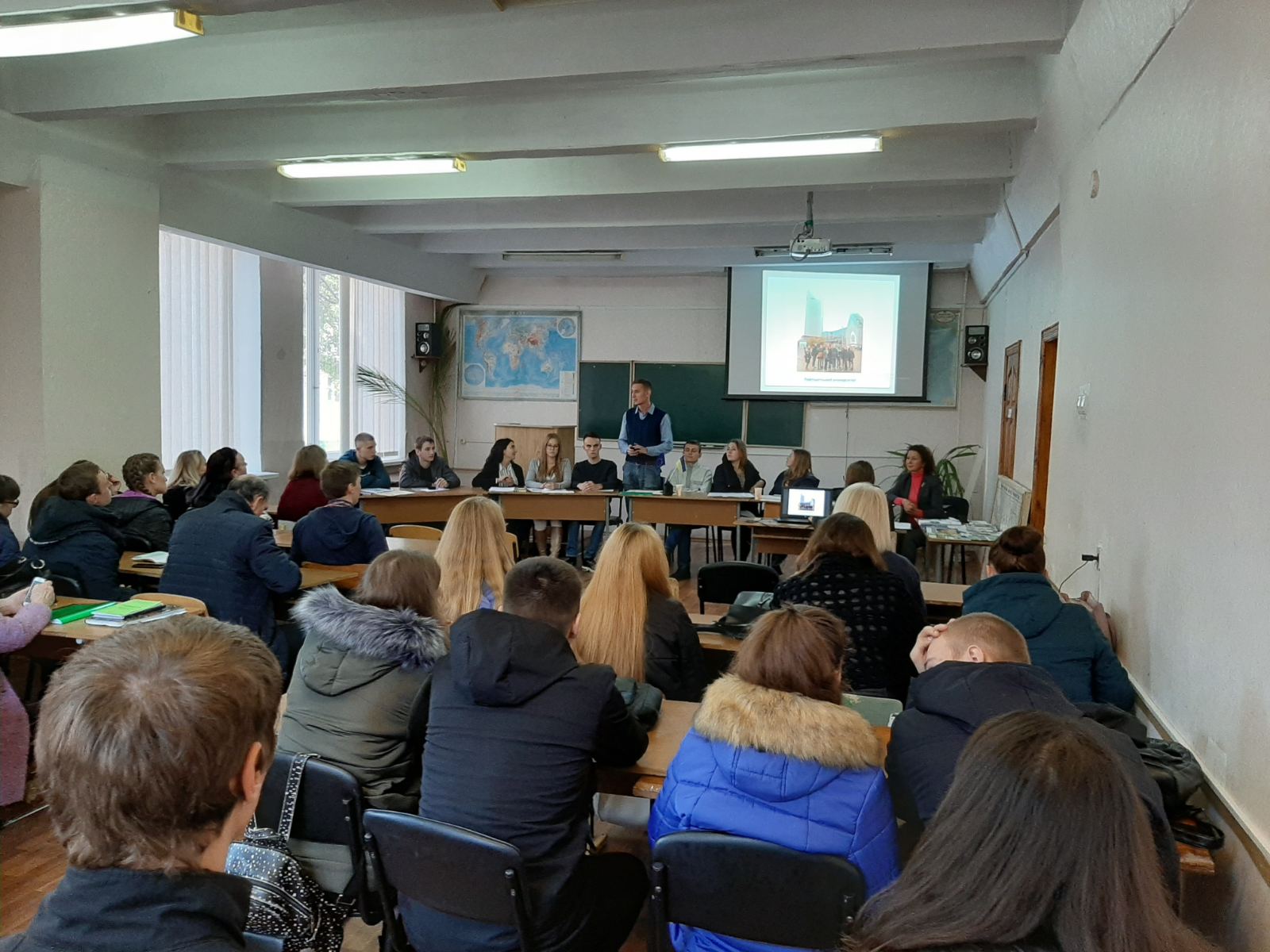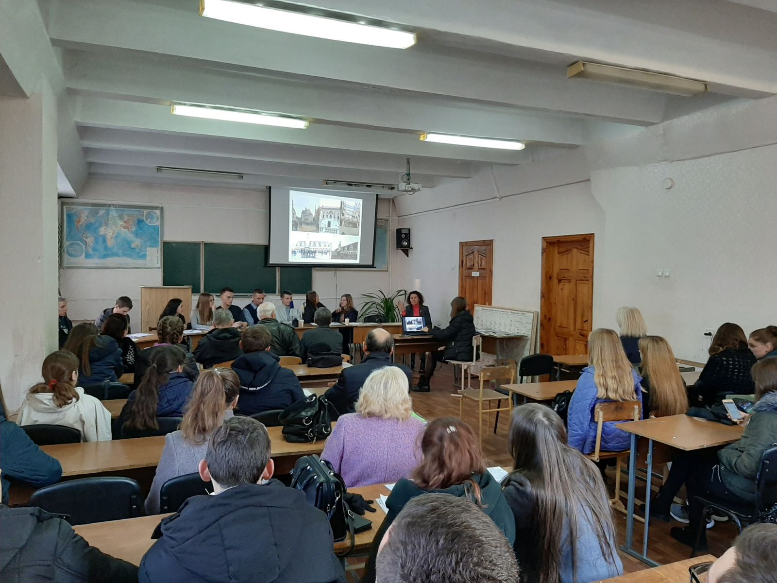 На природничо-географічному факультеті 4.10.2019 відбулася звітна конференція за результатами двотижневої поїздки студентів до Німеччини за програмою академічних обмінів DAAD під керівництвом доцента кафедри географії та геоекології Ольги Гелевери. Студенти розповіли про свою подорож, отримані знання та враження, продемонстрували чисельні світлини.