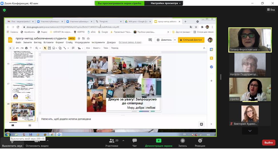 29 квітня 2021 року викладачі та студенти першого (бакалаврського) рівня вищої освіти спеціальності 014 Середня освіта (Хімія), 014 Середня освіта (Природничі науки) та 014 Середня освіта (Біологія) Центральноукраїнського державного педагогічного університету імені Володимира Винниченка відвідали лекцію в онлайн-форматі на тему: «Програмно-методичне забезпечення викладання шкільного курсу хімії (7-9 клас) в умовах модернізації національної системи освіти».