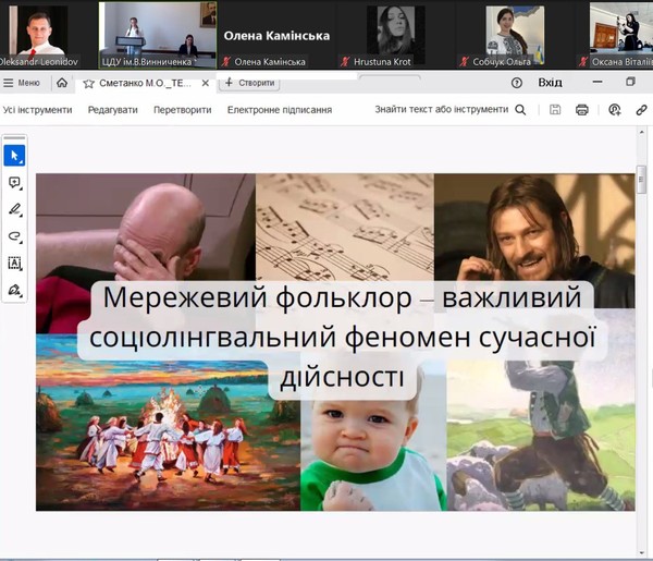З вітальним словом до учасників звернулась декан факультету, кандидат філ.наук, доцент Олена Габелко, після якого на пленарному засіданні виступили молоді науковці з різних вишів. Так, аспірантка кафедри української та зарубіжної літератур і методик їх навчання ТНПУ ім. В. Гнатюка Собчук О.Б. розповіла про історичний детектив у британській літературі. Основними рекомендаціями щодо висвітлення історій про дітей з інвалідністю в умовах війни в Україні поділилась здобувачка першого (бакалаврського) рівня вищої освіти Волинського національного університету імені Лесі Українки Крот Х.А. Не менш актуальними були презентації студентів ЦДУ ім. В. Винниченка. Про своєрідність мережевого фольклору в контексті російсько-української війни розповіла здобувачка першого (бакалаврського) рівня вищої освіти Сметанко М.О., про специфіку прагматичного потенціалу англійської парентези дізнались з доповіді здобувачки магістерського рівня вищої освіти Камінської О.О., а особливості відтворення японських реалій в англо-українському художньому перекладі розкрила здобувачка другого (магістерського) рівня вищої освіти Ручко К.В.