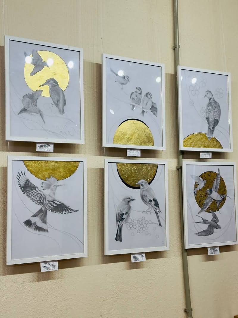 Поєднанням реалізму з певною умовністю та стилізацією відрізняються роботи Ірини Кушнарьової (керівник – Любов Гусєва) із серії «Крилатим ґрунту не треба - «Вільні літати», «Око води», «Тиха вірність», «Очі над калиною», «Тепло в пір’їні» та «Голос степу» (білий папір, графітний олівець, чорний лінер, золота поталь). Вони доповнюють одна одну, створюючи цілісний художній образ птаха, з яким пов’язані безліч історій, легенд, розповідей, пісень та творів образотворчого мистецтва – як живописних, так і графічних різноманітних робіт видатних художників, всіляких мініатюр, станкових, монументальних та декоративних художніх творів. Образи птахів є невід’ємною складовою художніх творів, як українських, так і зарубіжних. Зокрема, в українському фольклорі можна виділити жанр календарно-обрядових пісень – щедрівки та колядки, в яких часто згадуються птахи, які мають символічне значення, адже тісно пов’язані з усіма етапами людського життя.