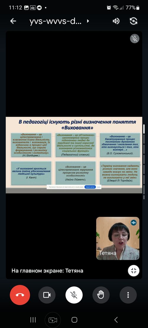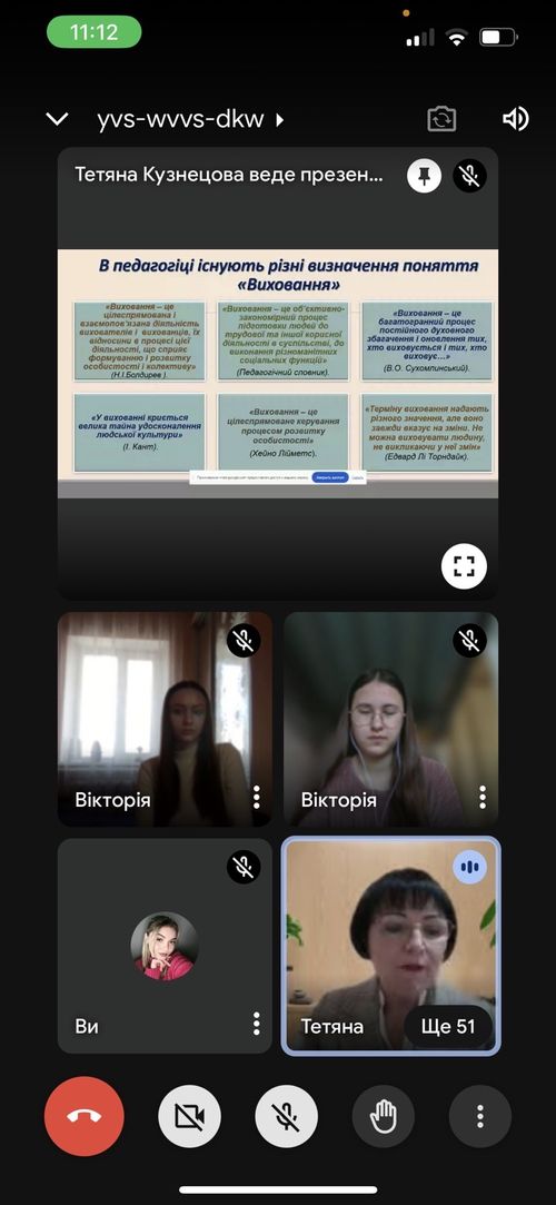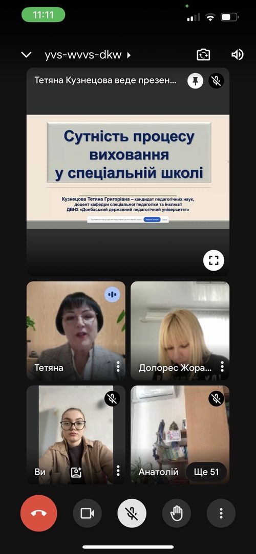 9 квітня 2024 року відбулась зустріч (гостьова лекція) із к.п.н., доцентом кафедри спеціальної педагогіки та інклюзії Донбаського державного педагогічного університету Кузнєцовою Тетяною Григорівною та завідувачем кафедрою, професором Рацулом А. Б., доцентом Завітренко Д. Ж., ст. викладачем Нагорною О.В. та студентами груп: СО 21Б, СО 22Б, ДО 22Б; ПП 22Б. Тема лекції: «Сутність процесу виховання у спеціальній школі». Лектор-науковець зазначила, що природа не творить людину як цілісну особистость, вона лише закладає основи і створює передумови для її формування. Людина – це багаторівнева система, особливості якої виявляються у діалектичній взаємодії біологічних і соціальних факторів. Вступаючи в життя через соціальну і трудову діяльність, вона вливається у світ соціального досвіду, який є багатовіковим надбанням людства і стає основною школою становлення її як особистості. Процес діалектичної взаємодії біологічного і соціального, які впливають на формування особистості, вимагає науково обґрунтованої системи виховних впливів. Виховання – це соціальний і педагогічний організований процес Виховання – це соціальний і педагогічний організований процес формування людини як особистості. Наявність в аудиторії лектора-науковця пожвавлює лекцію, як традиційну форму навчання, вчить здобувачів порівнювати, оцінювати, аналізувати і дивитися на одне і те ж явище, але з різних сторін, сприймати різні точки зору як такі, що взаємодоповнюють одна одну. Високий професіоналізм, педагогічна майстерність та компетентність Тетяни Григорівни дозволила доступно розкрити основні питання щодо процесу виховання дітей з порушенням інтелекту. З величезною увагою студенти слухали новий науковий матеріал і цікавий практичний досвід лектора, отримали корисні поради. Навчальний матеріал доповнювався цікавою, змістовною мультимедійною презентацією, що сприяє формуванню необхідних фахових компетентностей для майбутньої професійної діяльності за обраною спеціальністю здобувачів вищої освіти.