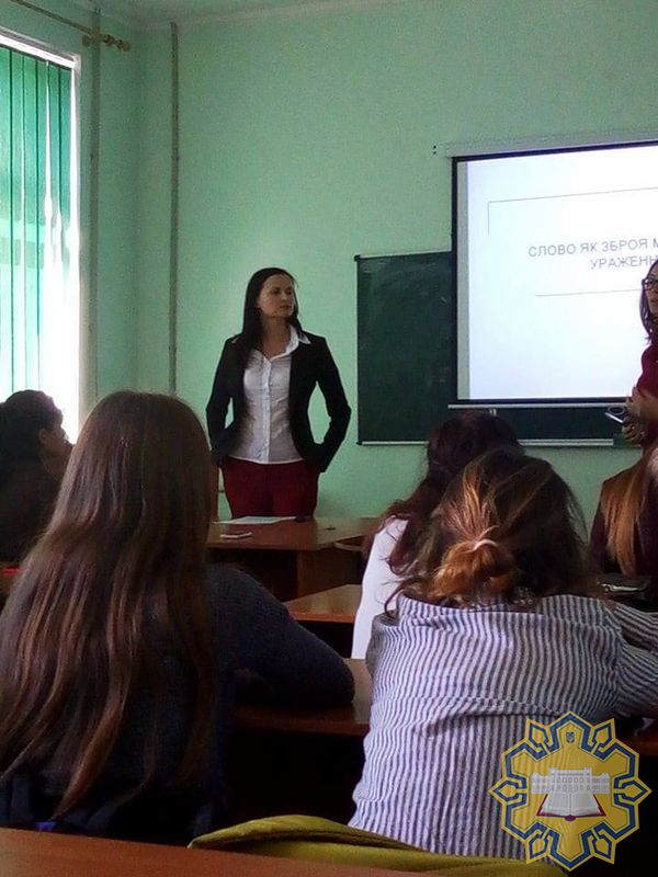 У вівторок, 3-го жовтня, Feel Fest на факультеті філології та журналістики продовжив вражати своїми цікавими заходами. Одним з таких заходів була надзвичайно важлива для наших реалій лекція на тему: «Слово як зброя масового ураження», яку прочитала кандидат філологічних наук, доцент Ольга Леонідівна Кирилюк .