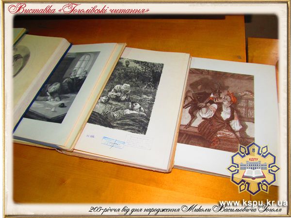 Відомі художники, віддаючи шану таланту Гоголя, писали безліч картин, ілюструючи твори до його книг. На виставці представлені рідкісне видання «Альбом гоголевских типов» художника ХІХ ст. П. Боклевського, ілюстрації Кукриніксів, Е. Кибрика, А. Лаптєва, Б. Дегтярьова, Ю. Кияченка, М. Дерегуса.