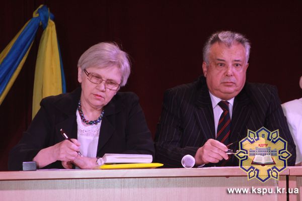 Учасників конференції привітали директор департаменту освіти і науки обласної державної адміністрації Е.В. Лещенко та ректор університету, доктор філологічних наук, професор О.А. Семенюк.