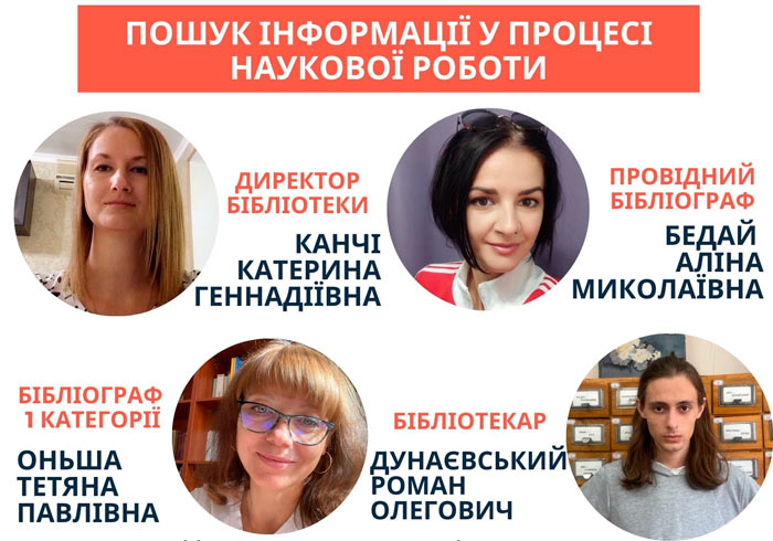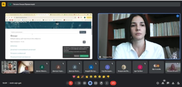 Співробітники бібліотеки надали аспірантам корисну інформацію щодо можливостей книгозбірні. Директор бібліотеки Катерина Канчі розповіла про історію бібліотеки, її становлення та розвиток. Бібліограф першої категорії Тетяна Оньша детально ознайомила учасників із ресурсами, доступними як локально, так і віддалено, а також із послугами, які надає бібліотека. Провідний бібліограф Аліна Бедай представила інформацію про інституційний репозитарій та пояснила алгоритм пошуку інформації в ньому. Бібліотекар Роман Дунаєвський зосередив увагу на наукометричних базах даних, пояснивши можливості їх використання для підвищення якості наукових досліджень.