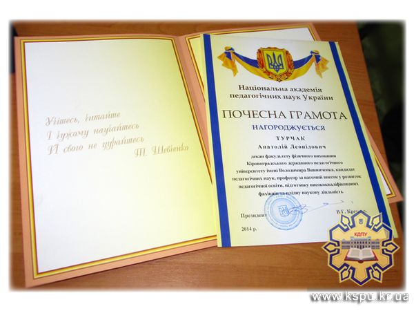 Почесну грамоту НАПН України отримав декан факультету фізичного виховання, кандидат педагогічних наук, професор Турчак Анатолій Леонідович.