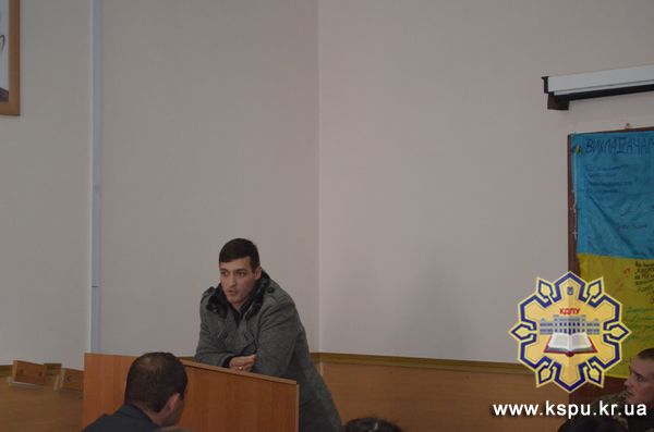 На факультеті історії та права КДПУ ім. В. Винниченка відбулася зустріч студентів і викладачів із випускниками факультету, військовослужбовцями третього Кіровоградського полку спецпризначення, воїнами АТО Ярославом Бирсою, Ярославом Сторчаком, Євгенієм Сушковим.