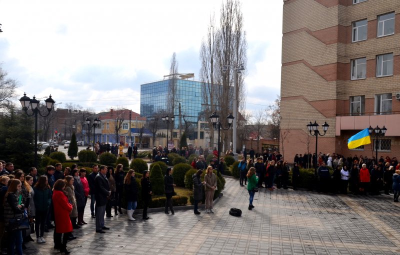 До заходу долучилися представники влади, викладачі, містяни та студентство. Окремо наголосив на важливості події та дав історичний коментар кандидат історичних наук Юрій Митрофаненко.