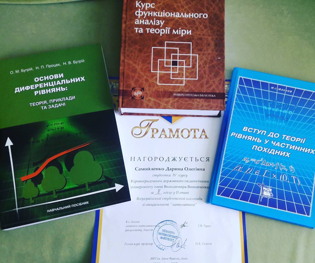 25-28 квітня 2017 року на механіко-математичному факультеті Львівського національного університету імені Івана Франка відбулася Всеукраїнська студентська олімпіада з математики серед студентів педагогічних вишів. Учасником олімпіади була і студентка фізико-математичного факультету (спеціальність «Математика») Самойленко Дарина Олегівна, яка у складній боротьбі виборола почесне друге місце у загальному заліку.