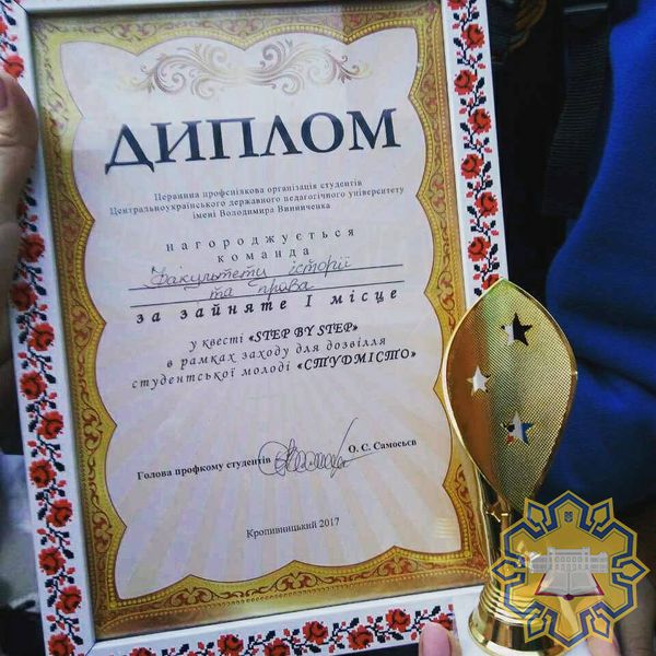 Команди-переможці квесту та волейболу були нагороджені подяками, дипломами та подарунками від спонсорів заходу. Нагородження провів Голова ППО студентів ЦДПУ ім.В.Винниченка Самосьєв Олександр Сергійович разом із регіональним директором Кропивницької філії телекомунікаційної компанії «Воля» Олійником Павлом.
