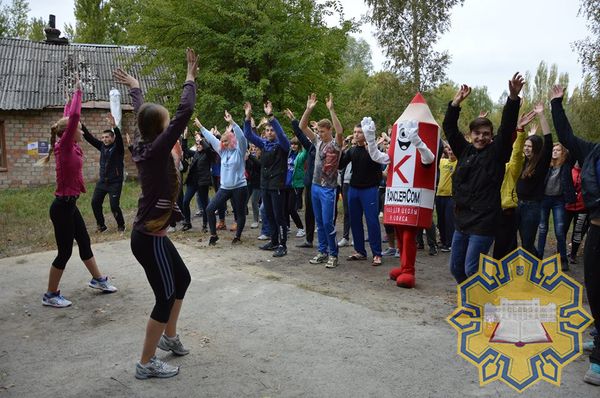 Щоб розігрітись та отримати позитивний результат у боротьбі - учасники взяли участь у колективній руханці, яку провели студентки факультету фізичного виховання.