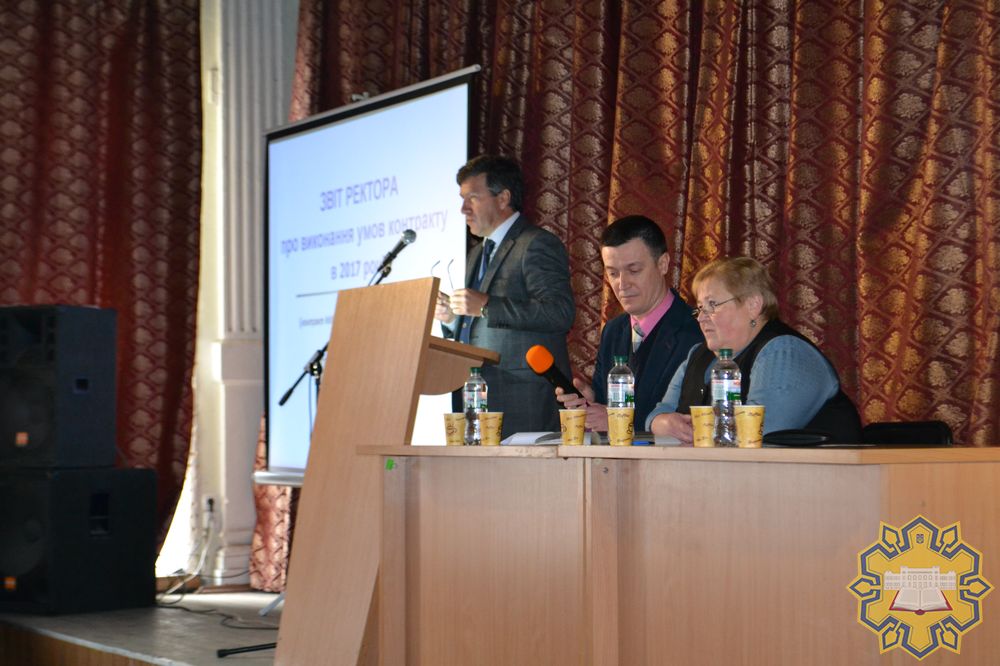 Колектив заслухав доповідь ректора Семенюка О.А., в якій було окреслело основні здобутки і проблеми роботи ректора університету за звітний рік.