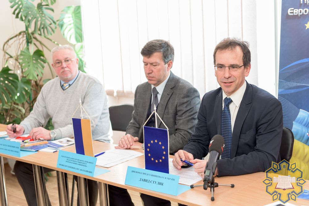 Після урочистого відкриття інформаційного центру ЄС Давід Стулік провів дискусію із студентами педагогічного університету на тему: «Місце української молоді в Європі, яка постійно змінюється».