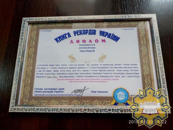 Олексій презентував факультету фізичного виховання сертифікати з встановлених рекордів, що займуть почесне місце на дошці пошани інших рекордів завойованих нашими студентами!