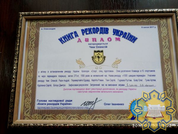 Другим рекордом, що також занесений до Книги рекордів України, стала вправа на перекидання покришки вагою 270 кг, 1000 разів за 1 год 28 хв.
