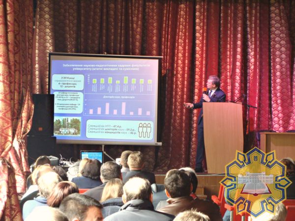 Далі підсумки науково-дослідної роботи професорсько-викладацького складу університету за 2018 рік підбив проректор з наукової роботи, професор Сергій Михида. Основними питаннями, висвітленими в доповіді, були: забезпечення науково-педагогічними кадрами факультетів, захист кандидатських і докторських дисертацій, робота аспірантури й докторантури, проведення наукових конференцій, публікації викладачів університету, міжнародна діяльність, наукова робота студентів. Окрім підсумків, Сергій Павлович виголосив і завдання щодо наукової роботи на 2019 рік.