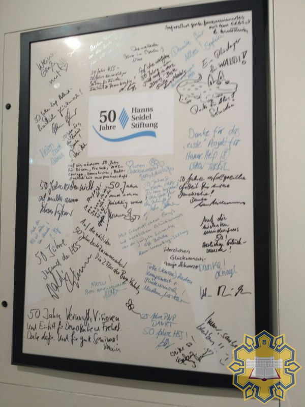 Представники організації Hanns-Seidel-Stiftung гостинно зустрічають кожного студента у своєму бюро та всіляко допомагають йому у разі потреби. Пан Крегер, який консультував мене щодо цієї програми ще до вильоту з України привітно зустрів мене та пояснив головні моменти, умови та особливості моєї участі у програмі, відповів на всі мої питання, дав корисні поради та завжди був готовий допомогти у разі потреби. До того ж, він представив мене керівнику студентської групи у місті, в якому я жила завдяки чому в план моїх дій додалися екскурсія на виноробню з подальшою дегустацією вин, відвідування лекції у Франкфурті та перегляд театральної п’єси під відкритим небом. Пан Чепала особисто проінформував мене щодо особливостей програми та подорожі до Берліну, порадив як краще дістатися до місця призначення, що взяти з собою та до чого готуватися. Він піклувався про кожного учасника програми як декан піклується про кожного свого студента. Під час нашого перебування у Берліні він постійно супроводжував нашу групу, пояснював всі незрозумілі моменти, координував нас та цікавився кожним студентом, його життям, самопочуттям та успіхам у навчанні.