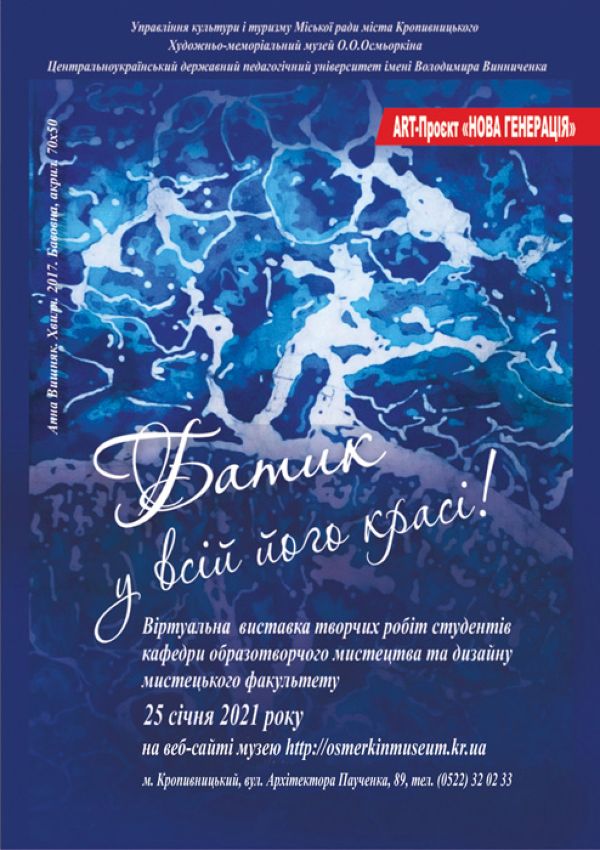 На сайті обласного художнього музею відкрито виставку творчих робіт студентів кафедри образотворчого мистецтва та дизайну мистецького факультету Центральноукраїнського державного педагогічного університету імені Володимира Винниченка.