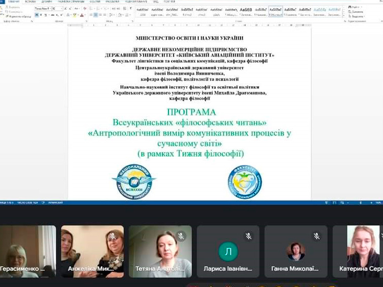 13 листопада кафедра філософії, політології та психології разом із Національним авіаційним університетом провела Всеукраїнські філософські читання з нагоди Всесвітнього дня філософії.