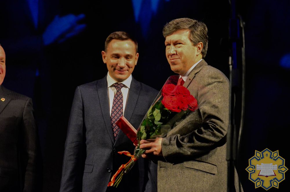 Під час пленарного засідання 47-го Обласного зльоту молодих учителів Кіровоградщини, присвяченого 100-річчю від дня народження Василя Сухомлинського, на сцені Обласного драматичного театру голова ОДА Кузьменко Сергій Анатолійович, голова Обласної ради Черноіваненко Олександр Анатолійович, Народний депутат України Яринич Констянтин Володимирович урочисто вручили нагородні документи «Заслуженого працівника освіти України» (Указ Президента №11 від 20.02.18 р.) ректору нашого університету Семенюку Олегу Анатолійовичу.