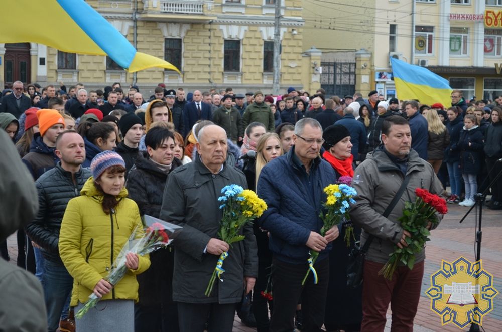 Сьогодні, 21 листопада, з нагоди Дня Гідності та Свободи відбулося покладання квітів до пам'ятної дошки Герою України Віктору Чміленку та пам'ятного знаку зі світлинами Героїв Небесної Сотні на площі Героїв Майдану.