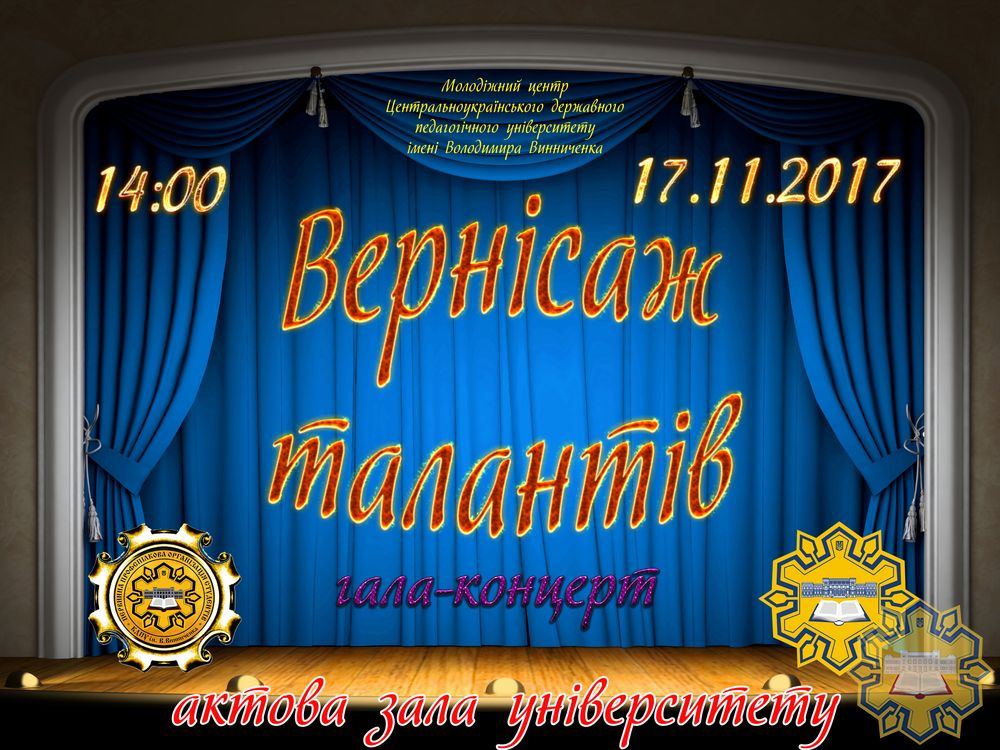Щорічний гала-концерт “Вернісаж талантів” до Міжнародного дня студента збирає викладачів та студентів для святкування! Нагадаємо, що протягом двох місяців на факультетах відбувалися “Вернісажі талантів” першокурсників, які демонстрували свої таланти та здібності. Неформально студенти оголосили цей конкурс, ще однією посвятою в студенти! На кожному з концертів обирали найкращий номер від факультету, який і представлятиме на заключному гала-концерті його. І ось, ця мить настала! Нагороди, подяки, для найактивніших та ще багато сюрпризів!