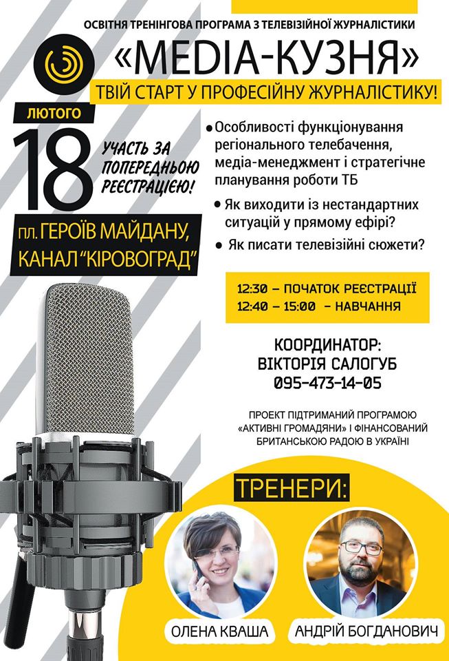 Приємні новини у новому році: проект «Media-кузня» отримав міні-грант від Британської ради в межах програми "Active citizens". Отож другий сезон проекту відбуватиметься у лютому-березні-квітні 2016 року, матиме більший масштаб, більше можливостей для учасників та більше практики. Тематика другого сезону - тележурналістика.