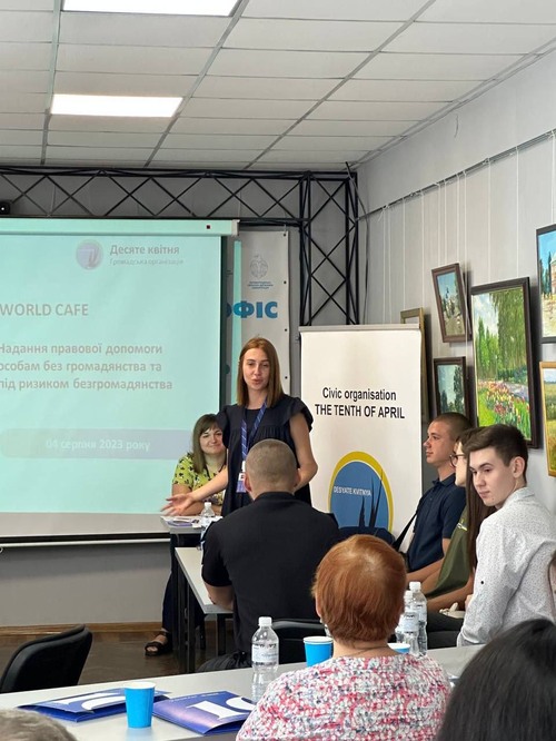 Наталя Цуцман, юристка ГО «Десяте квітня», висвітлила напрямки діяльності та позитивні результати надання громадською організацією правової допомоги особам без громадянства та під ризиком безгромадянства.