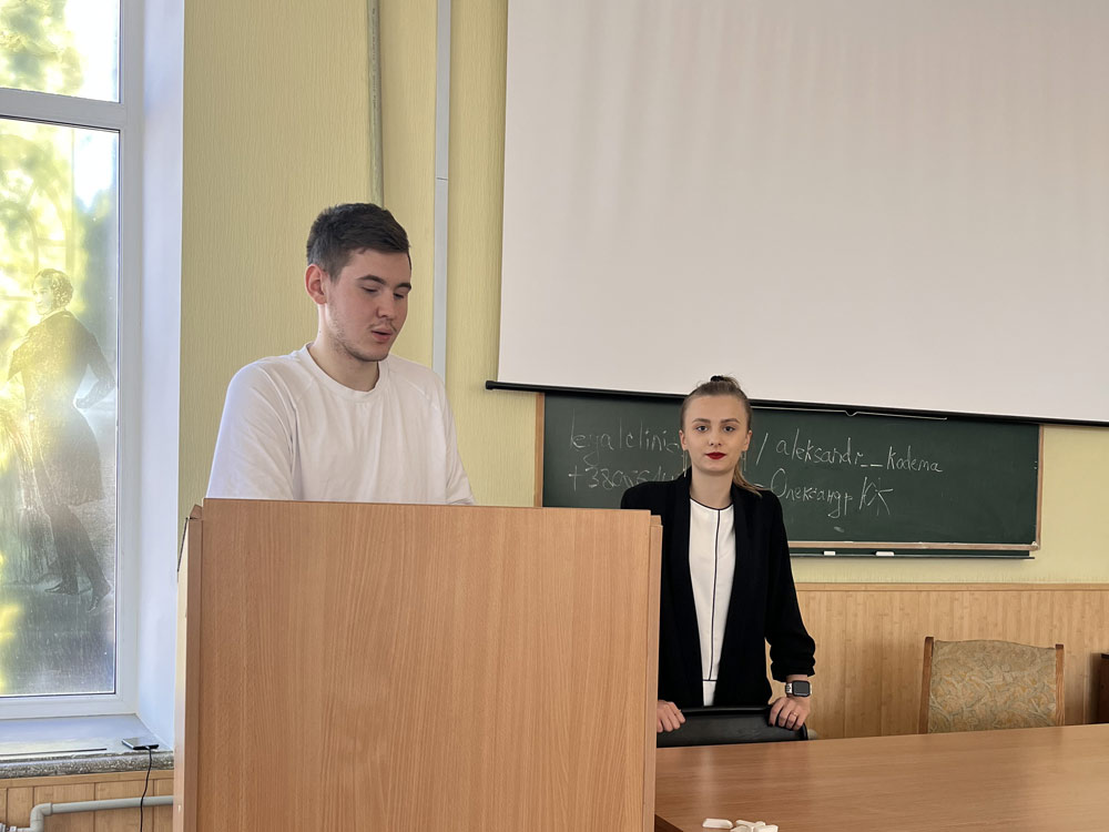 17 жовтня 2024 року студенти-консультанти юридичної клініки «Artium de Lex» Центральноукраїнського державного університету імені Володимира Винниченка Скрипник Марія та Бірюков Тарас завітали до студентів четвертого курсу ОП «Середня освіта (біологія та здоров’я людини, Хімія)», ОП «Середня освіта (Природничи науки)» з тренінгом на тему: «Основи трудового законодавства: особливості під час воєнного стану».
