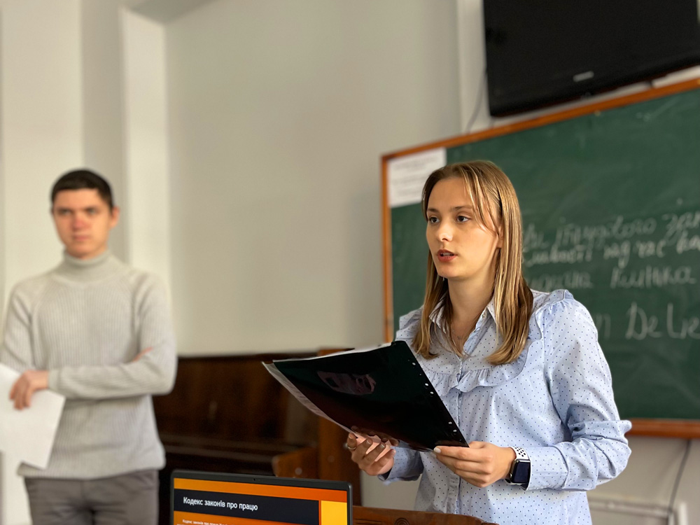 3 жовтня 2024 року студенти-консультанти юридичної клініки «Artium de Lex» Центральноукраїнського державного університету імені Володимира Винниченка Скрипник Марія та Бірюков Тарас провели тренінг для здобувачів освіти ОП «Право» другого та третього курсу першого (бакалаврського) рівня вищої освіти на тему: «Особливості трудового законодавства під час воєнного стану».