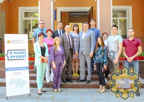 На базі головного територіального управління Юстиції відбулась зустріч з керівником Директорату з прав людини, доступу до правосуддя та правової обізнаності Мін'юсту , координатором проекту «Я МАЮ ПРАВО», Владиславом Власюком. Учасниками заходу стали партнери проекту, зокрема, Юридична клініка Центральноукраїнського державного педагогічного університету імені Володимира Винниченка у складі керівника Юридичної клініки ЦДПУ, доцента кафедри державно-правових дисциплін та адміністративного права, кандидата педагогічних наук, доктора філософії, Владимирової Валентини Іванівни та студентів-консультантів Максима Миколюка, Ірини Мунтян та Колісніченка Владислава.
