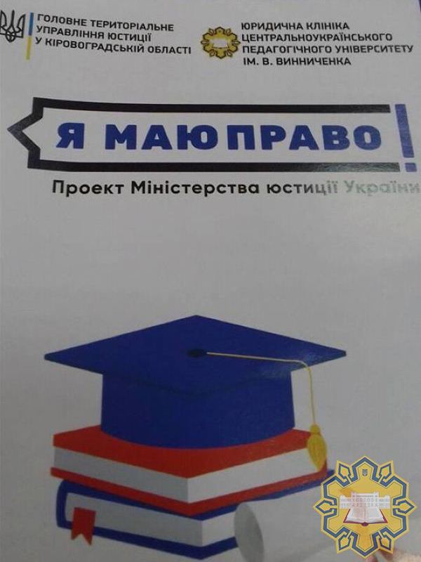 На таку тему 15 травня 2018 року у Кропивницькому на базі Центральноукраїнського державного педагогічного університету імені Володимира Винниченка відбувся тренінг, котрий організували студенти-клініцисти Юридичної клініки ЦДПУ, Ірина Мунтян, Владислав Колісніченко, Максим Миколюк та Марина Локотош за підтримки керівника Юридичної клініки ЦДПУ, доцента кафедри державно-правових дисциплін та адміністративного права, кандидата педагогічних наук, доктора філософії, Владимирової Валентини Іванівни.