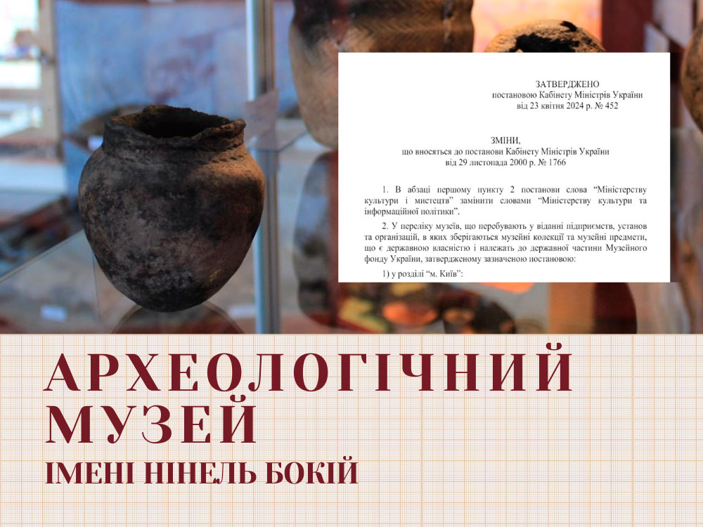 Археологічний музей імені Нінель Бокій внесено до Переліку музеїв, в яких зберігаються музейні колекції та музейні предмети, що є державною власністю і належать до частини Музейного фонду України.