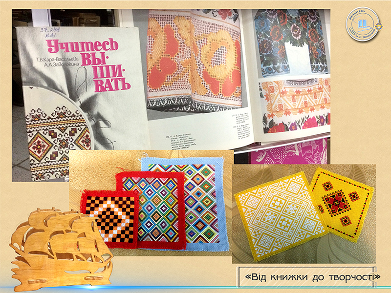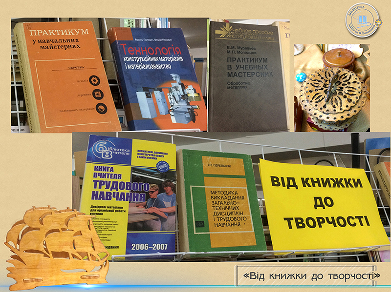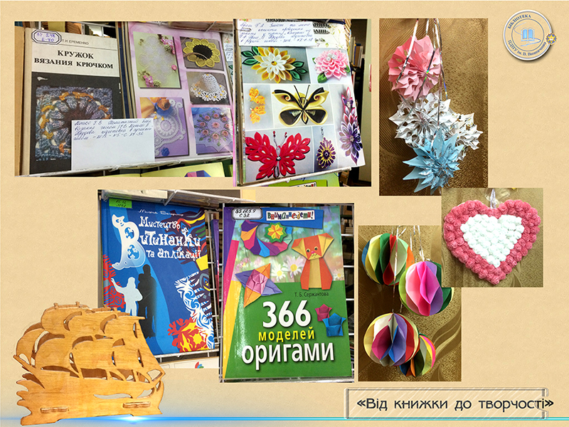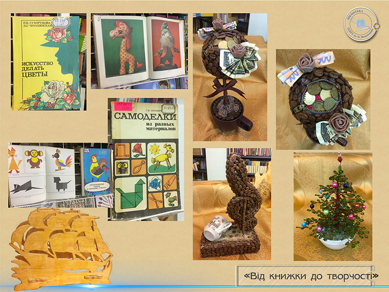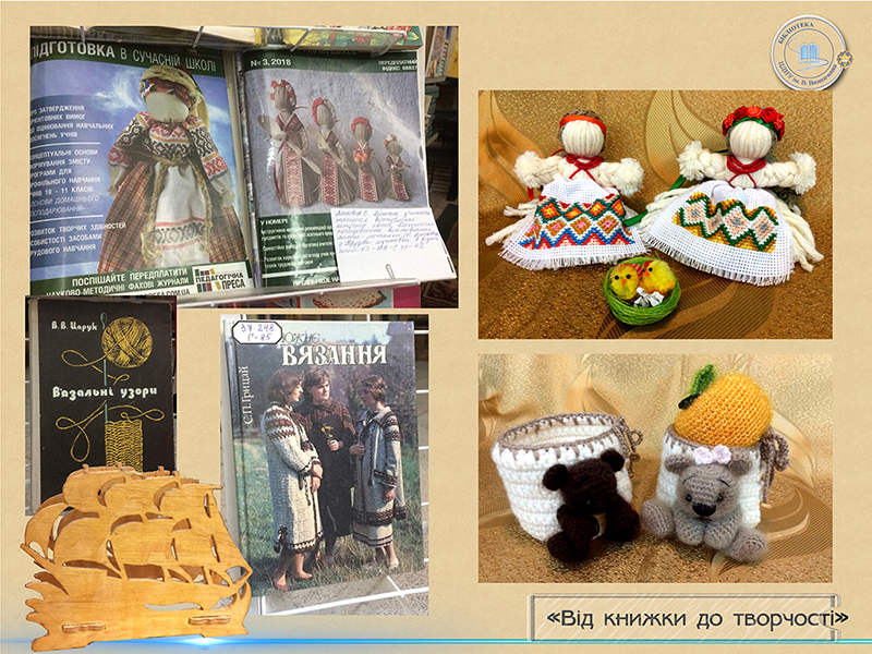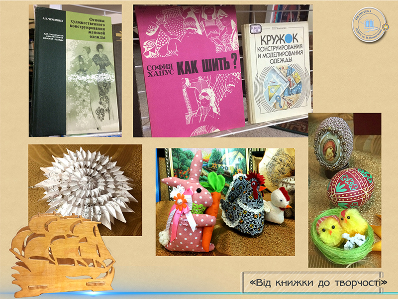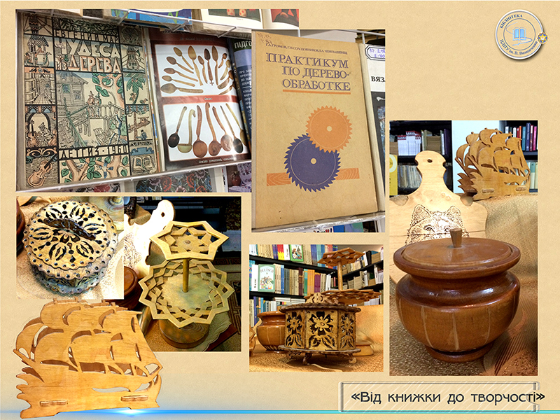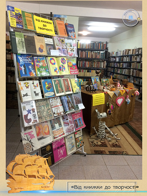 До цього свята бібліотекарі абонементу №2 підготували виставку “Від книжки до творчості”. Література, представлена на ній, знайомить читачів з матеріалознавством, технікою обробки дерева, металу та виробами з цих матеріалів, технологічною послідовністю виготовлення текстильної ляльки, ляльки-мотанки, мистецтвом виготовлення з різних матеріалів мʼяких іграшок, квітів. Також виставка познайомить читачів з такими напрямками творчості як: вʼязання, вишивання, шиття, мистецтвом витинанки, аплікації та оригамі.