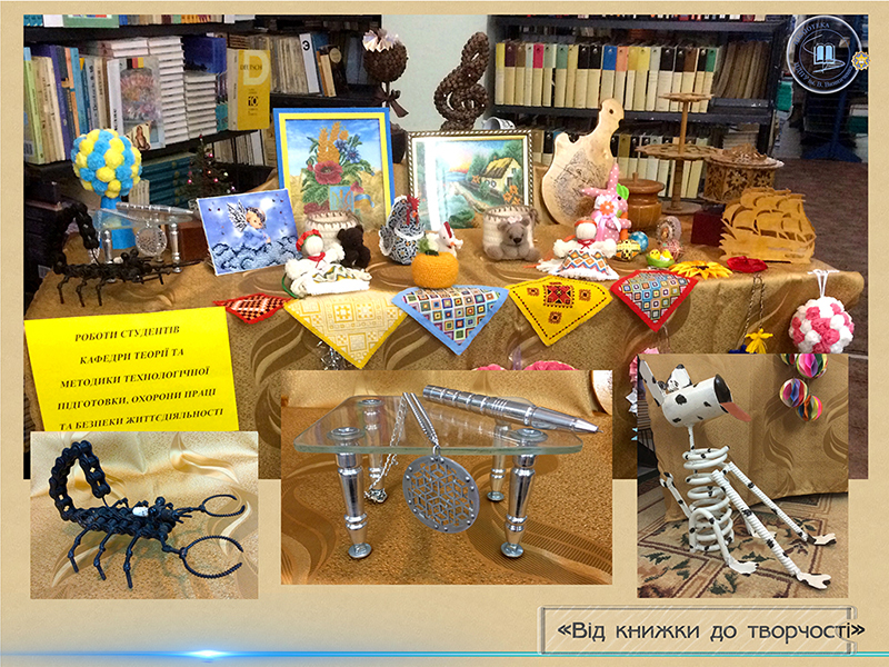 Проте, у різних людей — різна міра здібностей до творчості. Її можна розвивати наполегливою працею і навчанням. На виставці як раз і представлені вироби студентів кафедри теорії та методики технологічної підготовки, охорони праці та безпеки життєдіяльності, які досягли майстерності у створенні прекрасного своїми руками.