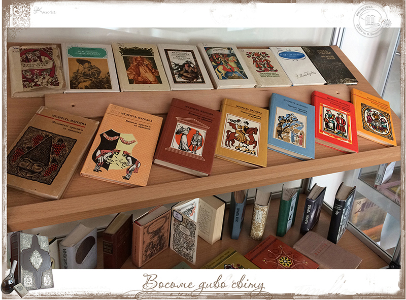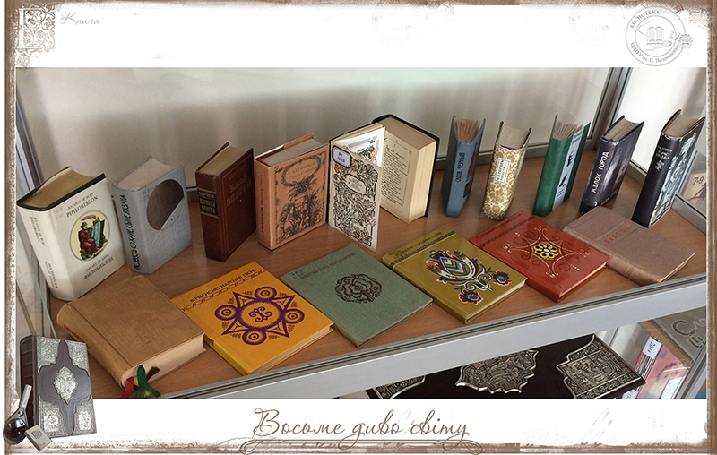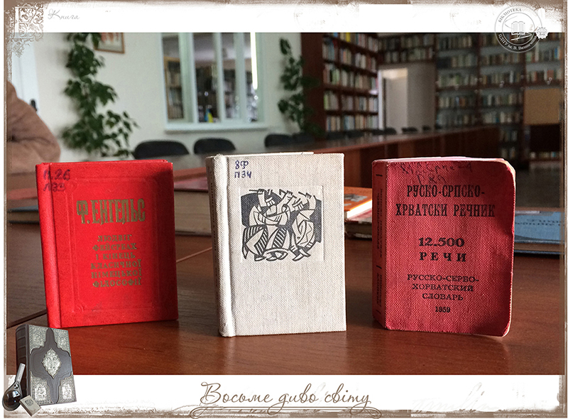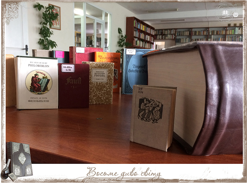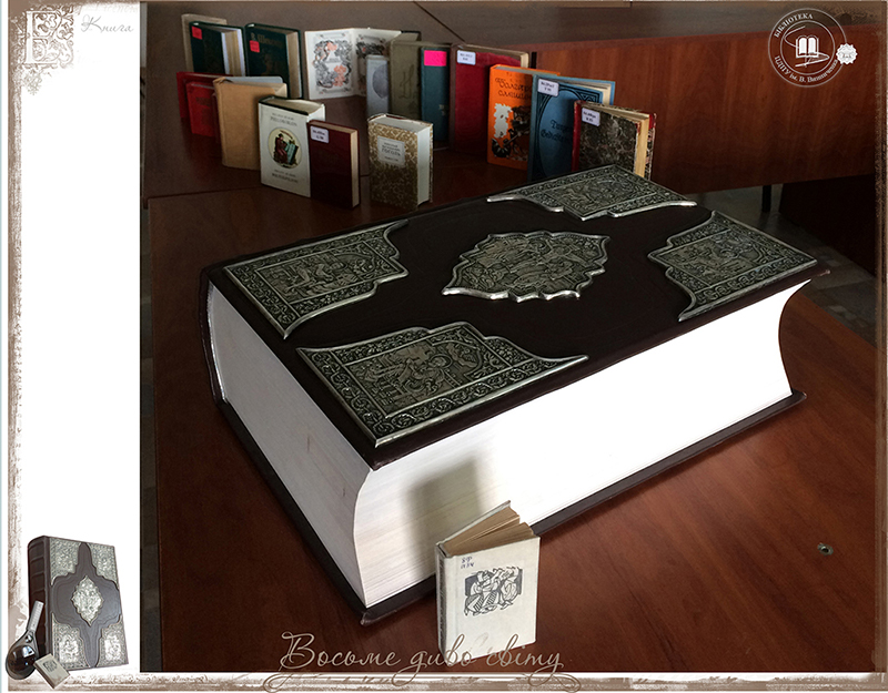 Експозиція репрезентує книжкові видання за їх форматом і вводить у світ мистецтва книги та книжкової культури.