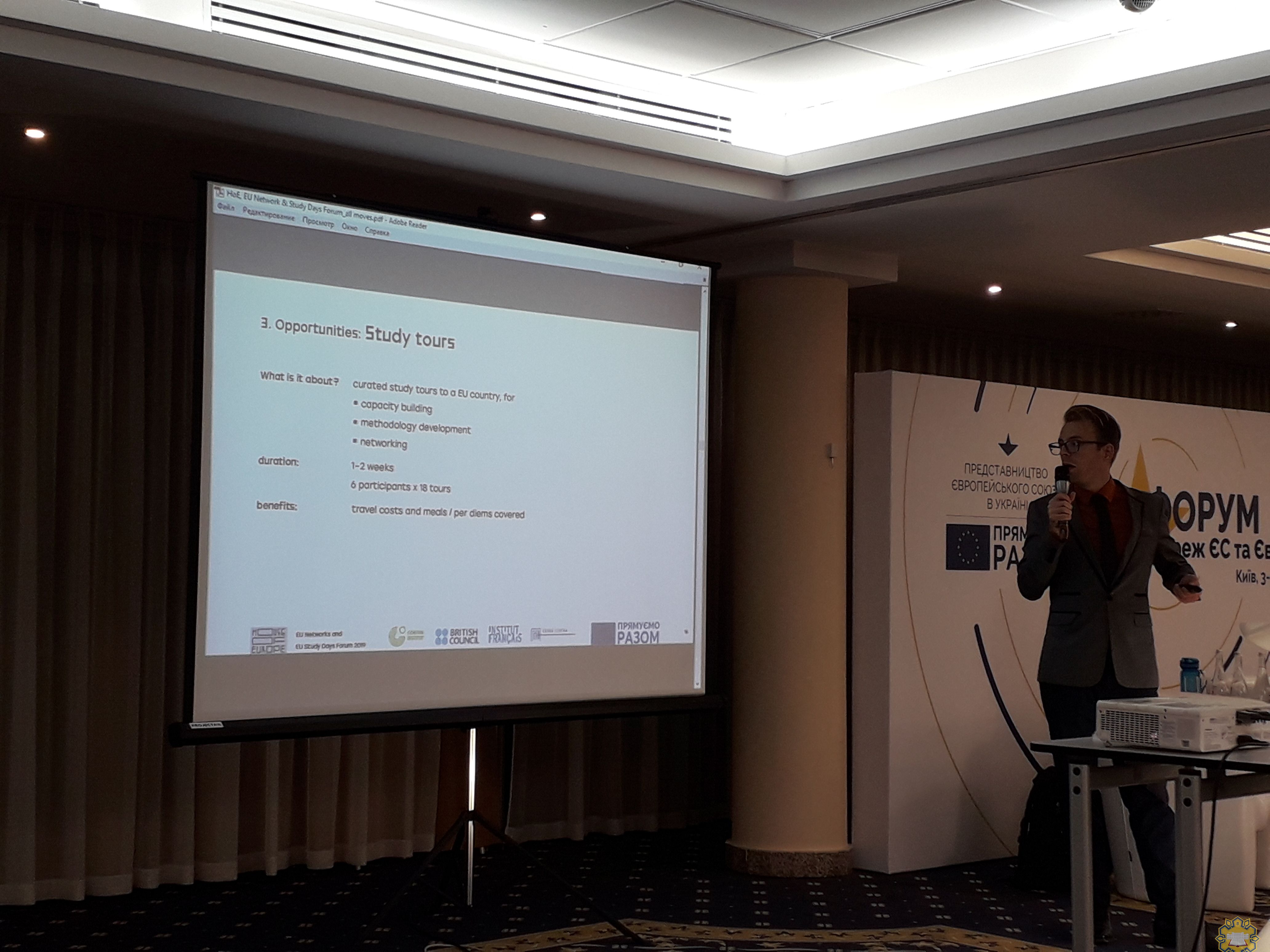 3-4 жовтня в Києві відбувся другий Форум мереж ЄС, метою якого було ознайомити членів мереж з останніми подіями у сфері відносин ЄС та України, дати учасникам можливість поділитися напрацьованим досвідом, проінформувати щодо сучасних інструментів комунікації. Усі заходи в рамках Форуму гостинно прийняв Прем’єр-готель «Русь». Участь у Форумі взяв і представник Інформаційного центру ЄС, який діє при Центральноукраїнському державному педагогічному університеті імені Володимира Винниченка, викладач кафедри англійської мови та методики її викладання Леонідов О.С.