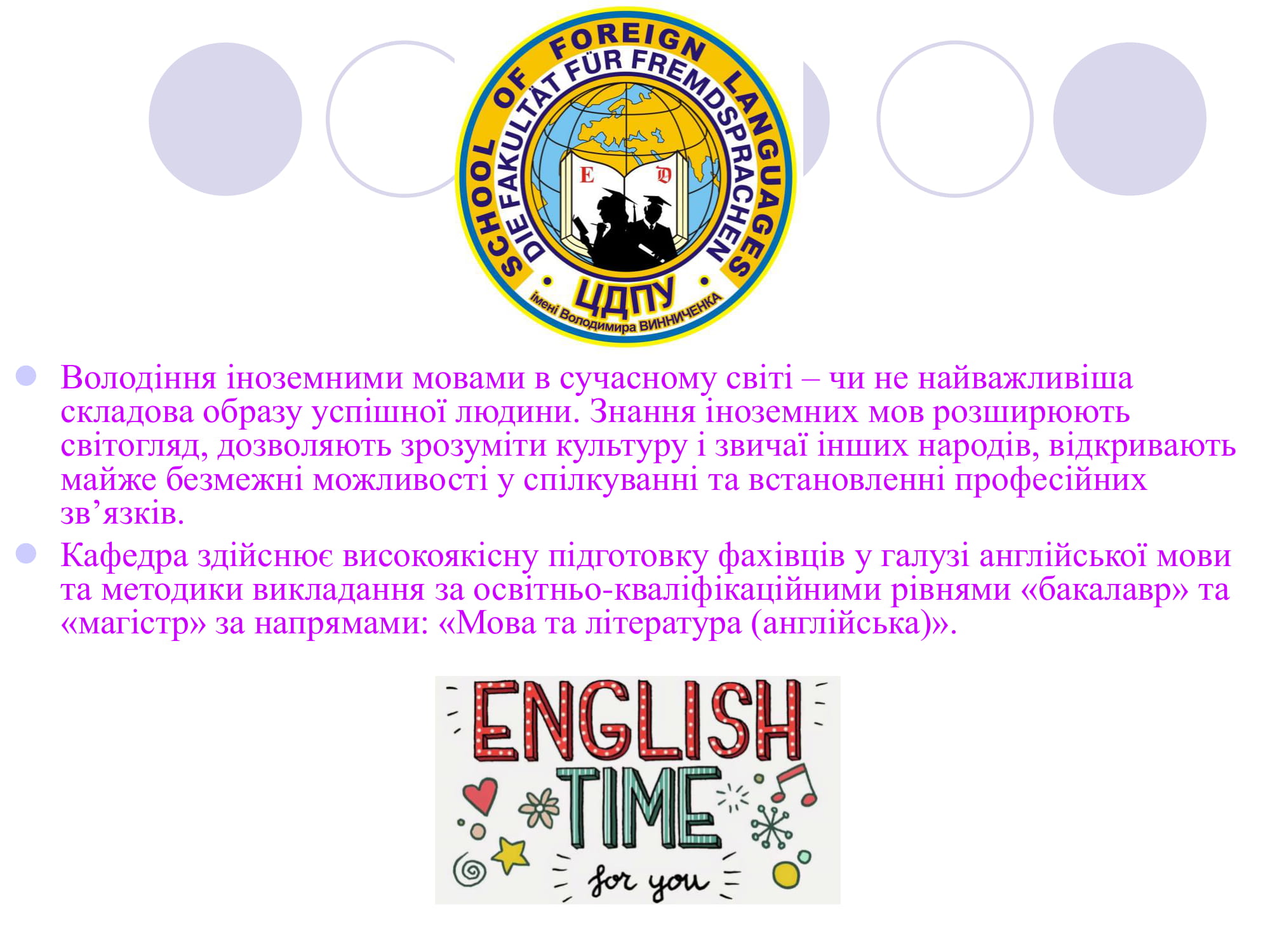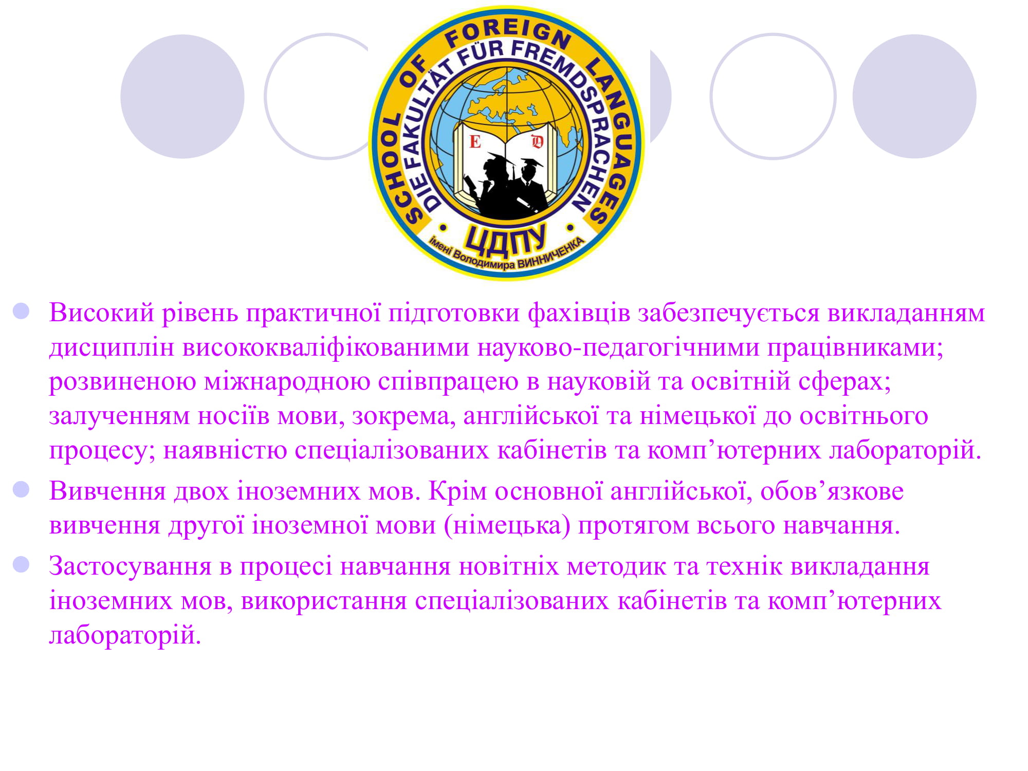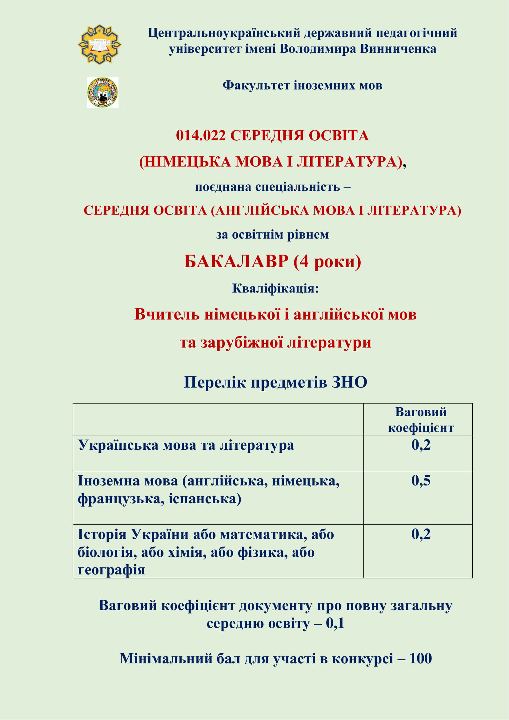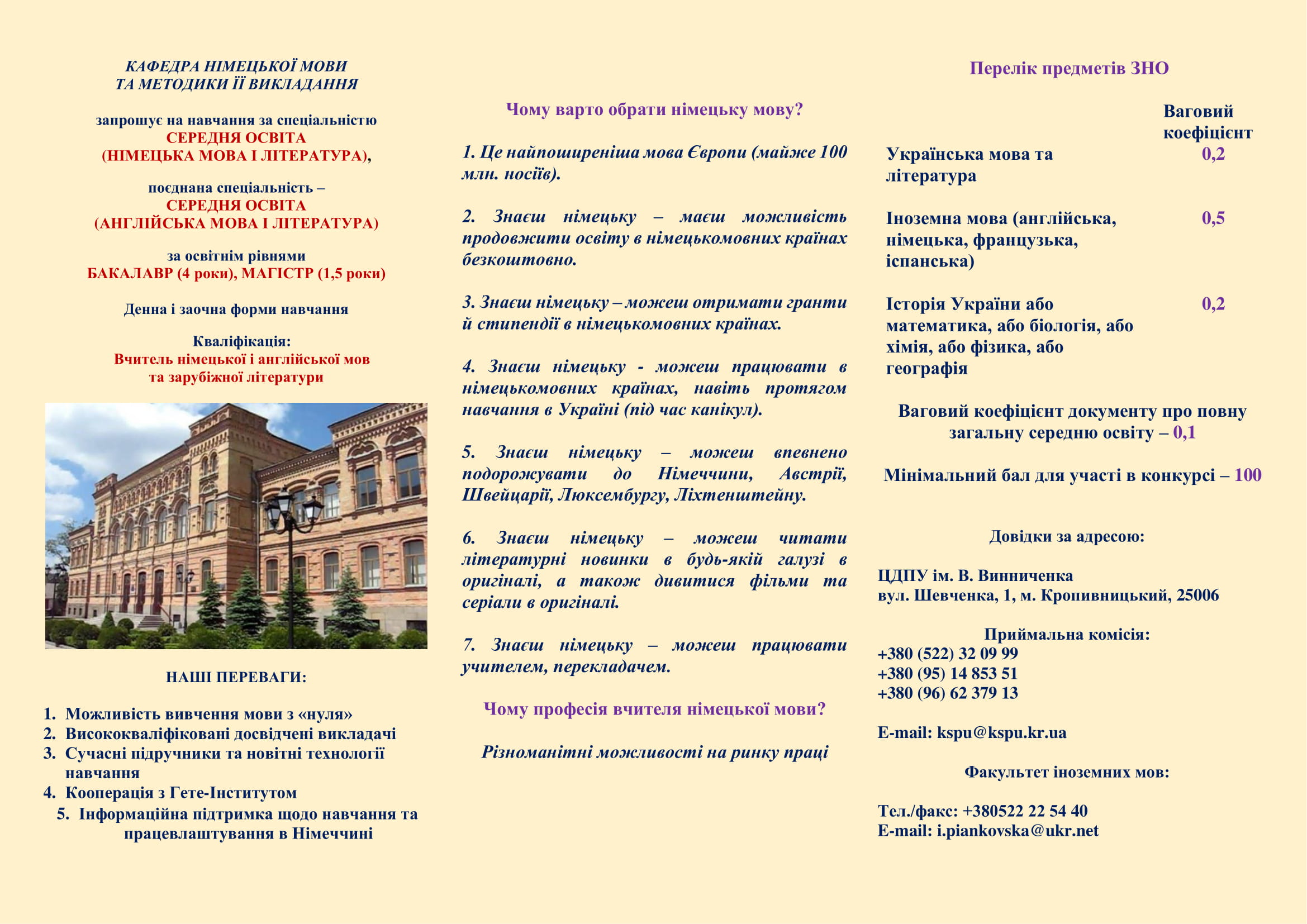 Факультет іноземних мов Центральноукраїнського державного педагогічного університету імені В. Винниченка запрошує на навчання активних, креативних та творчих студентів.