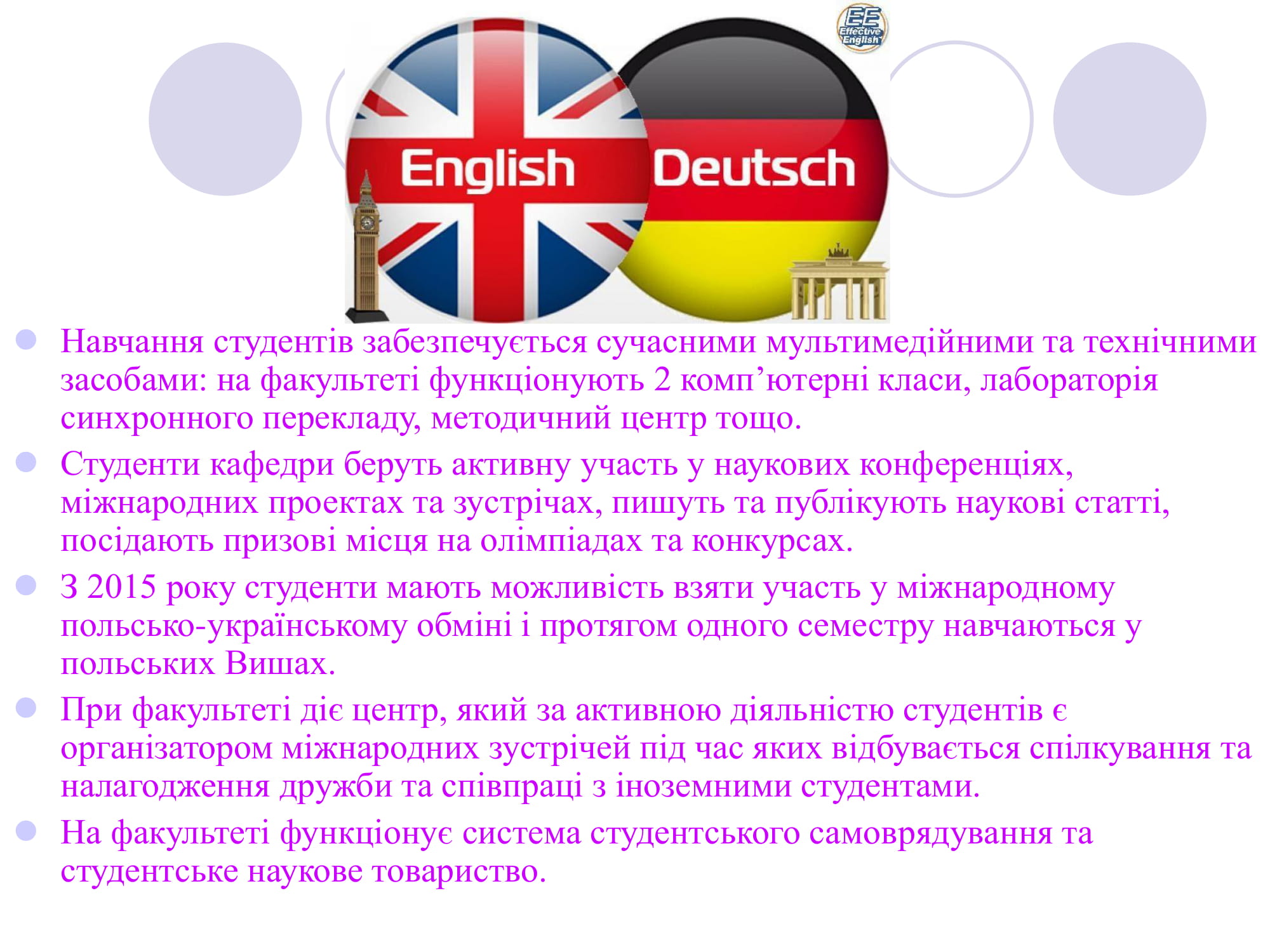 - На спеціальності Прикладна лінгвістика вивчається обов’язково 2 мови (англійська та німецька), не має значення перша чи друга.