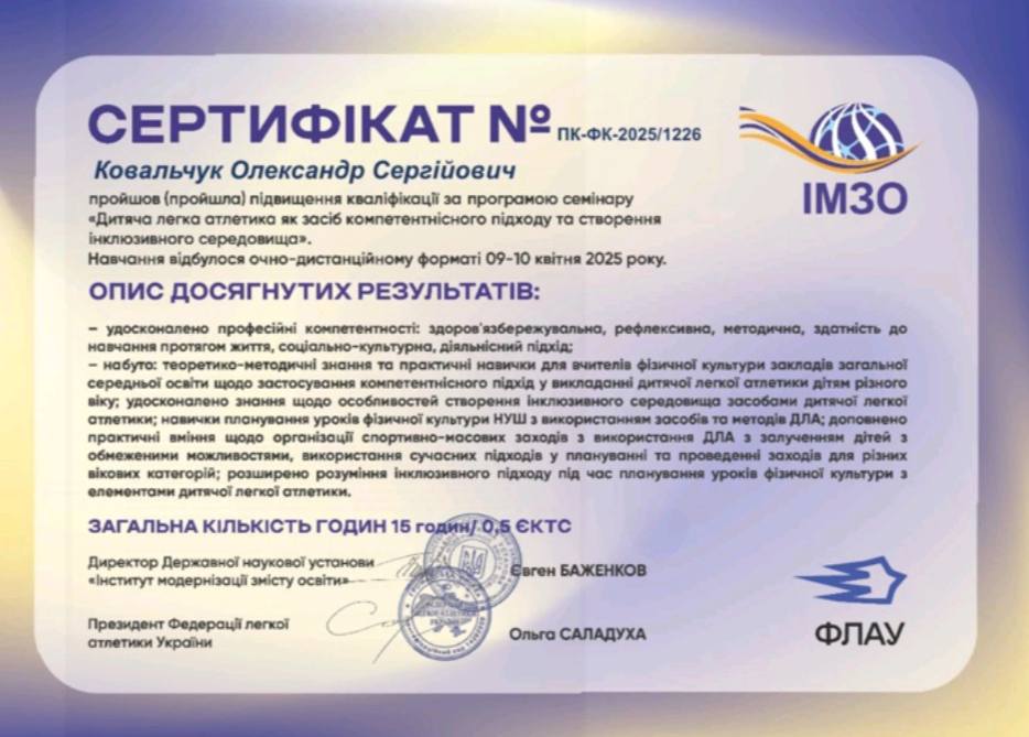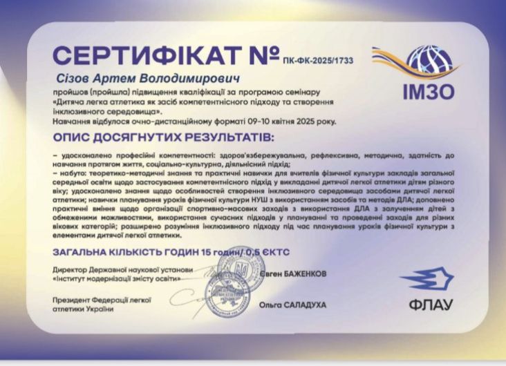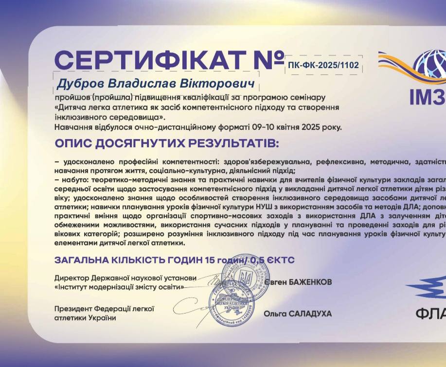 Семінар "Дитяча легка атлетика як засіб компетентністного підходу до створення інклюзивного середовища"