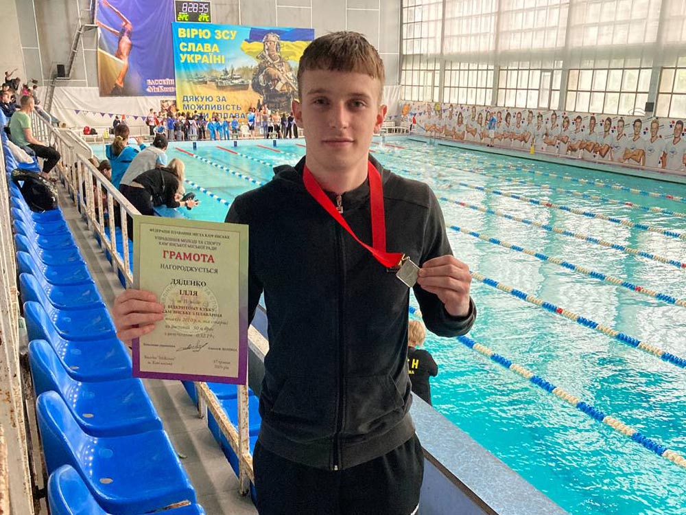 Студент першого (бакалаврського) рівня вищої освіти спеціальності А7 Фізична культура і спорт факультету фізичного виховання ЦДУ ім. Володимира Винниченка Ілля Дяденко здобув ІІ місце у Відкритому кубку м. Кам’янське з плавання (17 травня 2025 року) на дистанції 50 м брасом!