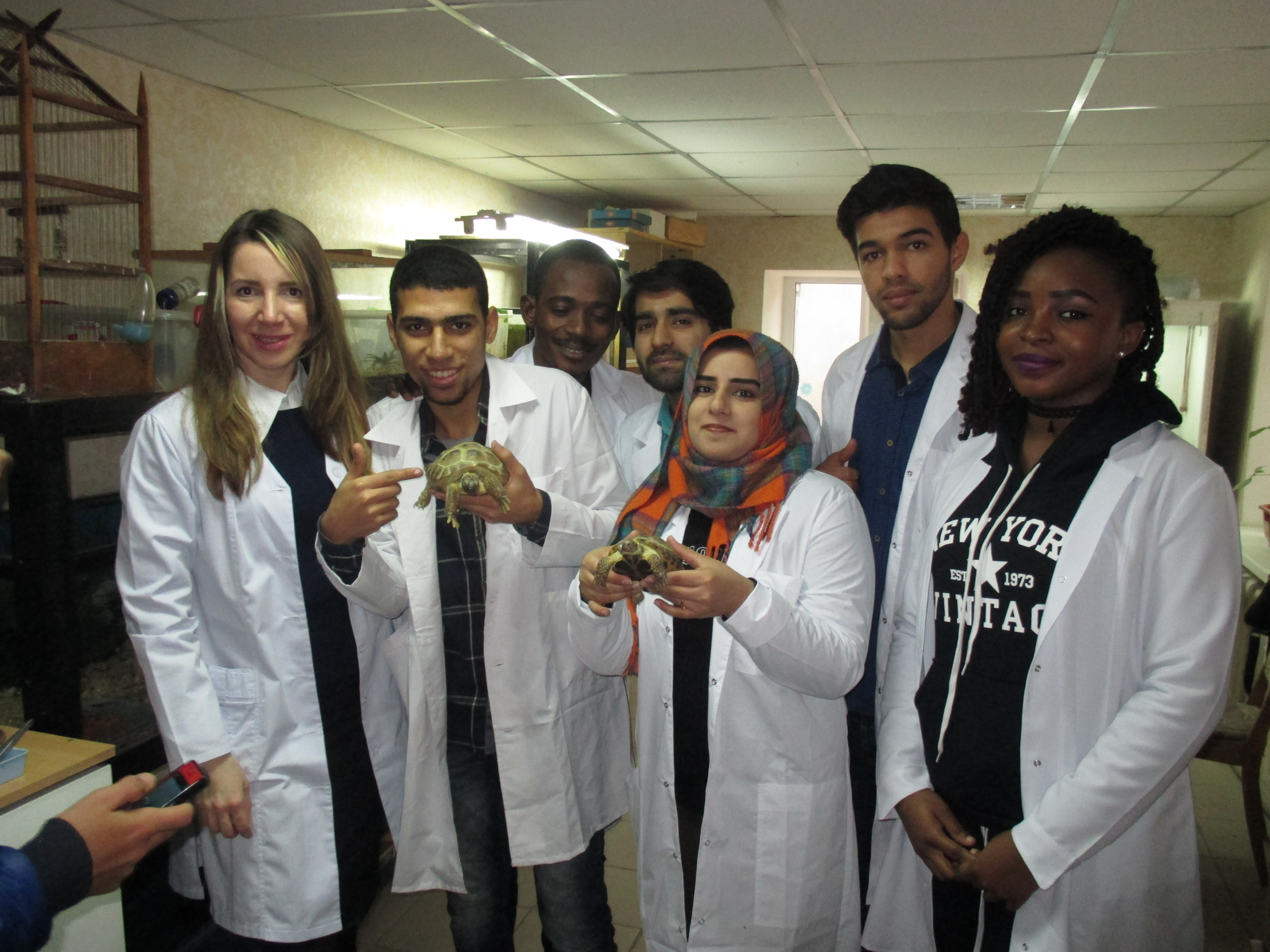 Екскурсію природничим музеєм провели разом з деканом природничо-географічного факультету – Є.О. Клоцом. Тут студентам було також досить цікаво. Виявилось, що деяких тварин вони бачать вперше. Разом з деканом ми пішли до природничо-географічного факультету. В біологічному корпусі оглянули лабораторії, обладнання, колекції водоростей, штами мікроорганізмів, культивовані на поживних середовищах, частину музейних експонатів, колекції комах. Завітали і до живого куточка, де знову побачили екзотичні для іноземців, однак звичні для нас тварини. Нажаль, час відведений для екскурсії був обмежений і на нас вже чекали в медичному університеті. Однак, дорогою назад все ж встигли пройти центром міста та зупинитися біля потртерів воїнів-патріотів, які загинули за мирне небо над нашою Найкращою Україною!