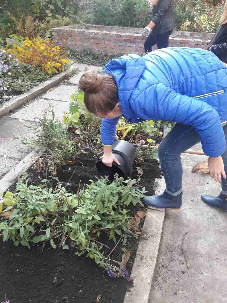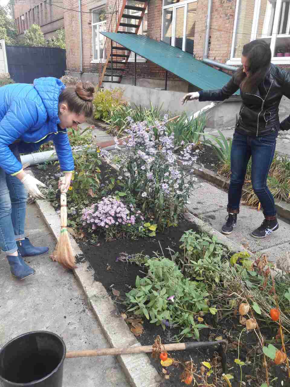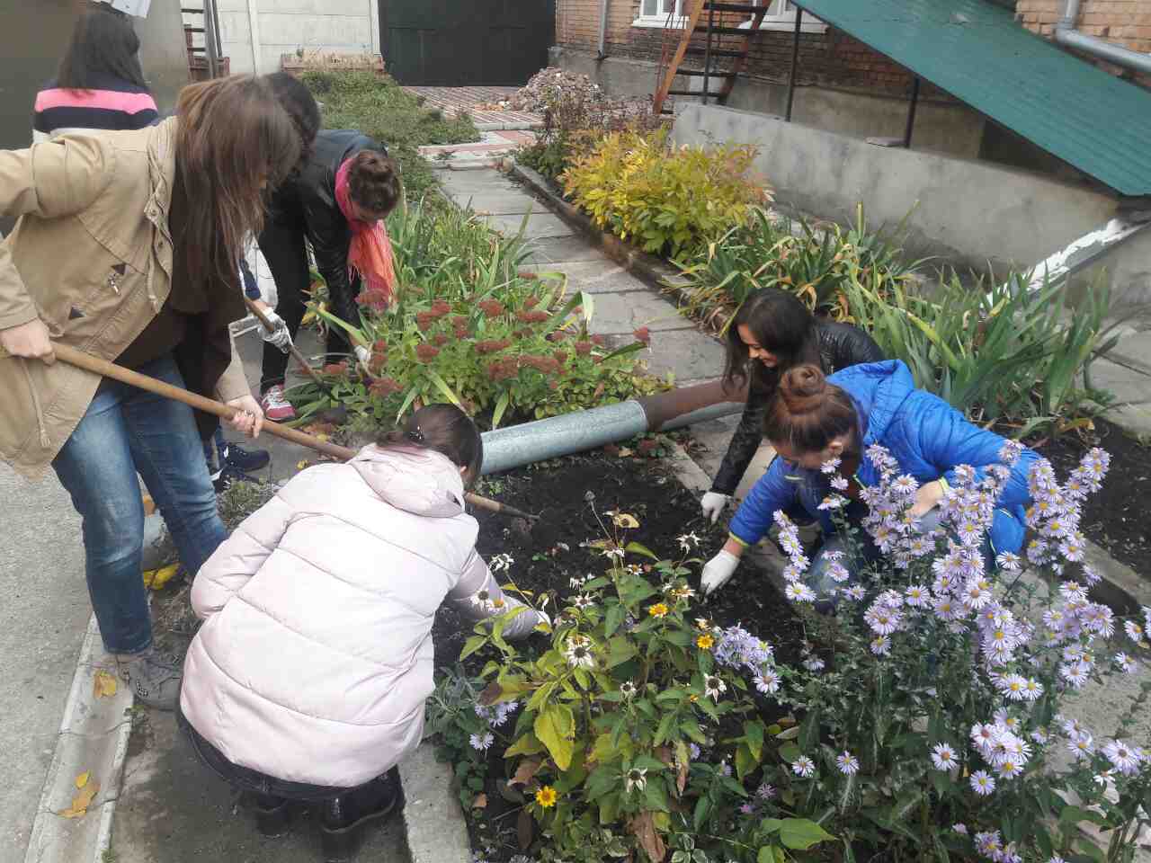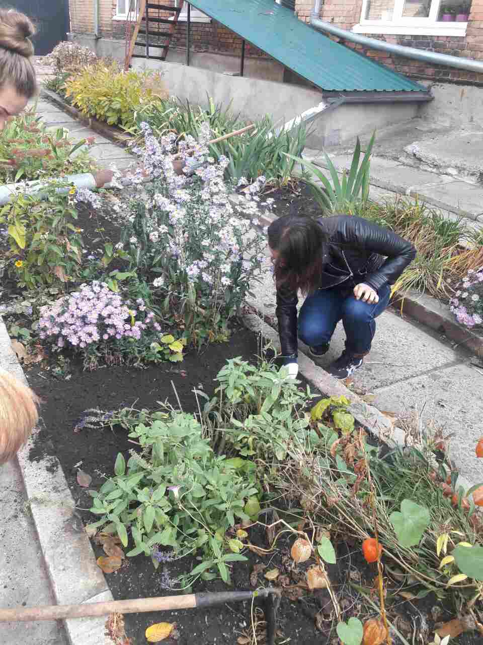 Студенти дружньо допомагали один одному та приймали активну участь. Посадка квітів ще більше згуртувала та зарядила позитивом на цілий день. В загальному всі залишились задоволені та з піднесеним настроєм. Після закінчення роботи студенти 45 групи, дослухавшись поради керівників, вирішили створити квіткову ікебану, яка прикрасила своєю незвичайністю та чарівністю кафедру біології.
