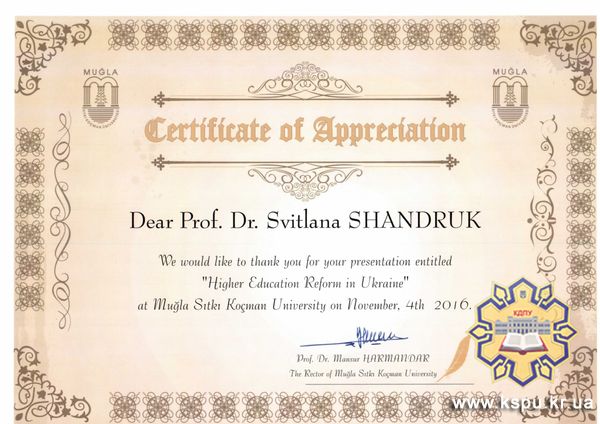 За ініціативи кафедри лінгводидактики та іноземних мов Кіровоградський державний педагогічний університет імені Володимира Винниченка уклав Угоду про співробітництво з Mugla Sıtkı Kocman University, Туреччина.