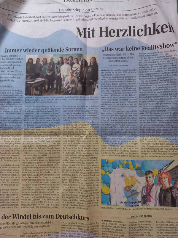 Доцент кафедри германських мов, зарубіжної літератури та методик їхнього навчання Аліна-Алла Степаненко нині перебуває в Німеччині, за програмою академічної мобільності в Університеті Байройту, і допомагає українцям, які знайшли тут тимчасовий захист, опановувати німецьку мову. Для школярів організовує літературні майстер-класи та літературні читання українських і німецьких авторів.