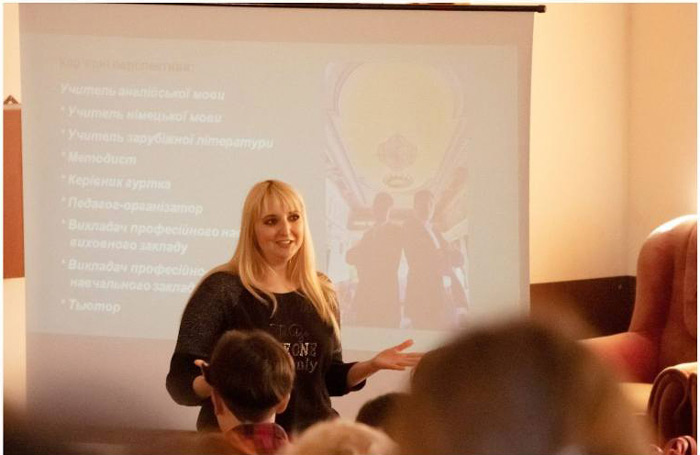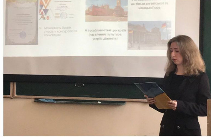 Завідувач Фока М.В. розказала про специфіку програми та важливість і можливості професії вчителя іноземних мов, доцент Пянковська І.В. пояснила особливості навчання німецької мови, а доцент Апалат Г.П. - англійської. Інформацію про навчання на спеціальності доповнили студентки Анна Машуровська та Евеліка Соломонова, а Дар‘я Літвінчук, Анна Христук і Оксана Коркіш приготували цікаву пізнавальну програму.