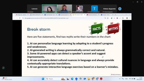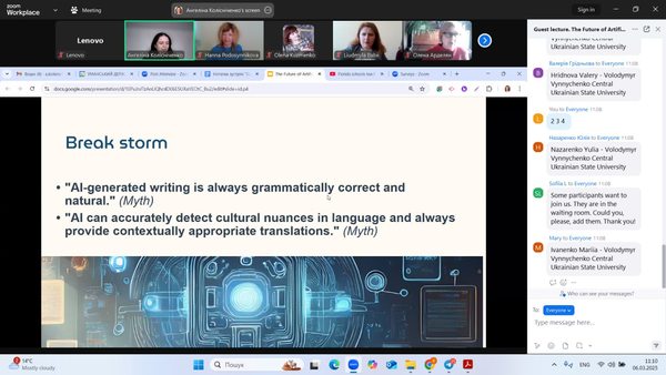 Слухачі лекції дізналися про різноманітні можливості ефективно інтегрувати платформи та застосунки ШІ для вивчення й викладання англійської мови, що є особливо актуальним сьогодні.