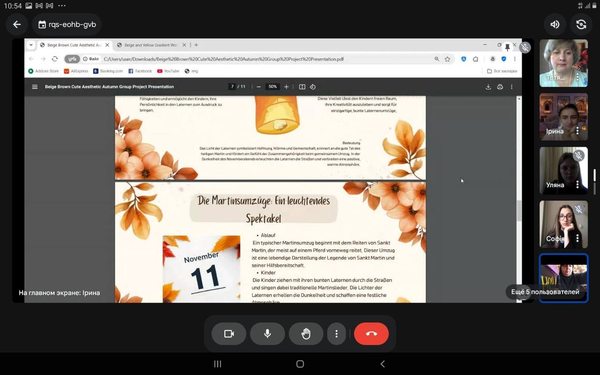 Студенти відповідально та творчо поставилися до створення власних презентацій та представили змістовно і яскраво оформлені роботи, в яких презентували офіційні та народні німецькі свята, такі як День єдності Німеччини, День святого Мартіна, Свято трьох королів, Вальпургієва ніч, Октоберфест та багато інших.