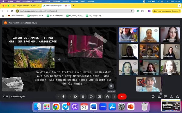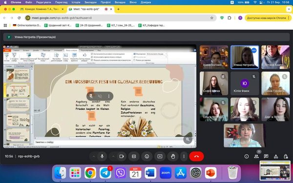 21 березня 2025 року були підбиті підсумки конкурсу презентацій "Німецькі свята". У конкурсі взяли участь 19 студентів-майбутніх вчителів англійської та німецької мов і зарубіжної літератури 1-4 курсів. Було поставлене завдання якомога повніше висвітлити німецькою мовою проведення німецьких святкових заходів.
